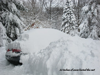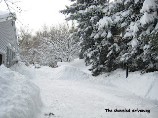 Edited at 1:22 PM--just wanted to add some pictures of our 22" snowfall! It is so beautiful outside, well, until you attempt to shovel! We finally cleared the driveway, but I don't know if my back will ever be the same...