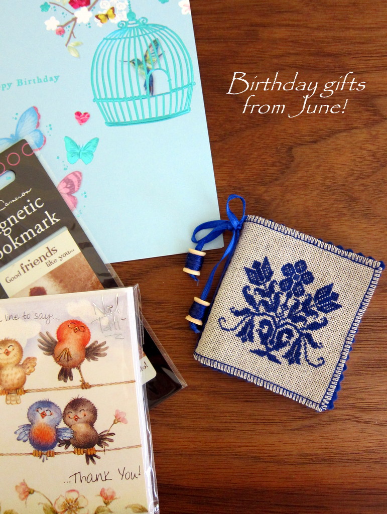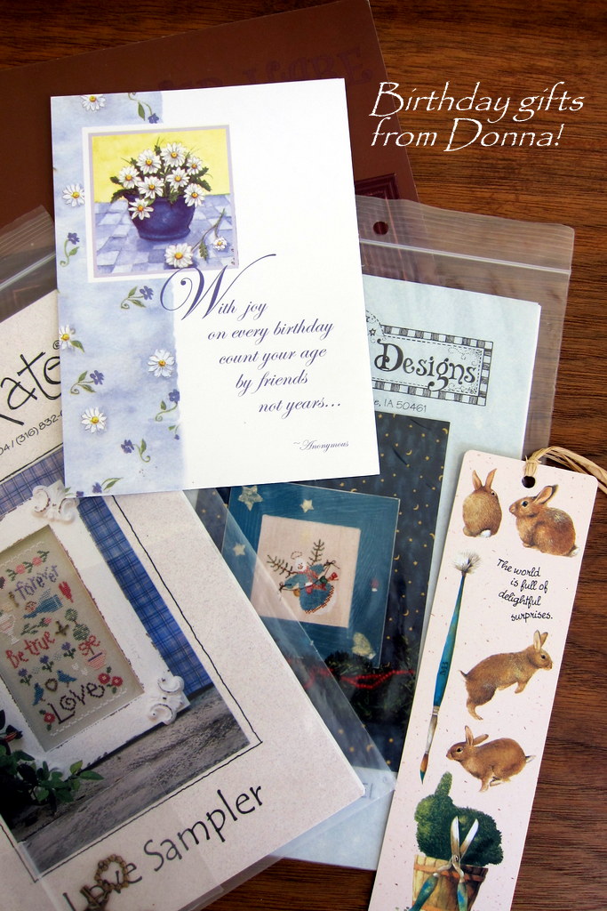 I hope you celebrate it in style! What thoughtful gifts you received from stitching friends!