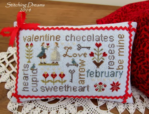 Happy Valentine's Day! And how are all of my stitching friends this fine morning? I know we're all sick of the snow and ice in the U.S. and the flooding in the U.K. It sure has been a winter to forget. We managed to escape the latest storm that hit the southern and eastern states this week--only got about an inch of fresh snow. Our ground has been continually covered with the white stuff since late December so I am more than ready for S-P-R-I-N-G! Oh well, only 33 days left...