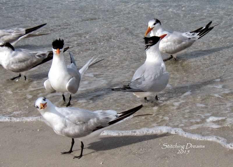 Carol, what a wonderful post. Lovely stitching (I love the snowbird ornament), bunnies (so cute) and wonderful photos of Naples in Florida. Your bird photos are stunning, think those birds with the black spiky heads are Sandwich Terns, or at least that is what we call them in the UK. Have a wonderful time in New York and I look forward to your next blog post. xx