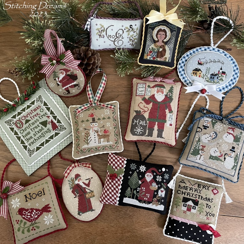 As Christmas draws closer, I move my newest dozen ornaments from the garland going up my stairs to our tree and replace them with stitched ornaments I've received from so many of you throughout the years. These will stay up until the new year.