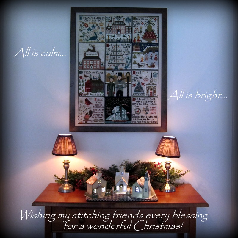 I want to thank all of you for your sweet comments--they are like little gifts to me throughout the year. They really are! When you take the time to write a blog, you never really know how many are reading unless they take the time to comment. I've received such lovely emails from people telling me I've inspired them to get back into stitching or try a new type of finish and I truly appreciate those. I feel very blessed to have "met" so many kind people through my stitching. Thank you--each and every one of you! Bye for now...