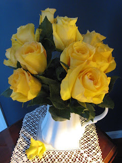 And from another of my blogging friends "down South," dear Charlene, came a wonderful RAK package. How sweet is this petite Ball Jar that she covered with a personalized blue and white stitching for me! I told her, I think it's the perfect place to hold my multi-colored buttons. She also made me a cute blue thread catcher and included some pretty blue and gold ribbon. I was so surprised and touched by your sweet gifts, Charlene--thank you again for your friendship and emails...They mean so much to me!