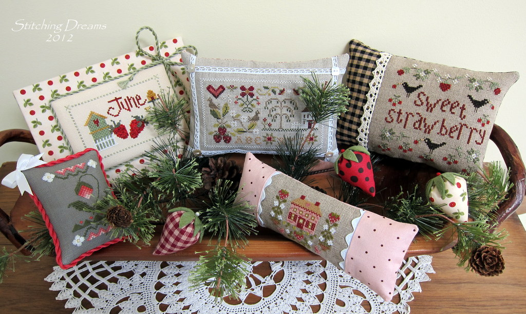 RAK received: What a delightful surprise came from a new blogging friend in England last week. Michelle, from Michelle's Stitch Craft Place blog made this delightful red and white pincushion and sent it to me as a RAK to thank me for my inspirational finishes on my blog. Wasn't that sweet? I just love it, Michelle, and I have already added it to my basket of pinkeeps stitched by friends around the world. I forgot to take a photo of the back of it, but it had the cutest red and white snowflake pattern and a darling fabric label that Michelle added. She has a photo of the back of it on her blog so go take a look and tell her I said "hello!" Thank you again, Michelle, for the lovely gift and for the beautiful card--I'll treasure them both!
