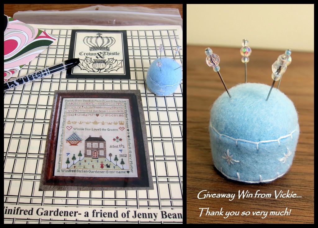 Earlier this month, I was the lucky winner of a giveaway held by Vickie at A Stitcher's Story