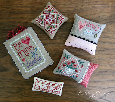 Here is a photo of all five of my February Valentine's Day finishes all together. As you can see, my tastes are quite eclectic!