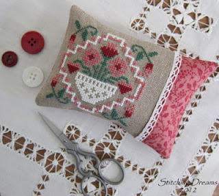 Good morning everyone! Hope your week is off to a wonderful start... Any special plans for Valentine's Day? Since I have to work that night and my husband is off skiing in Utah, I'll be having a lonely day (boo hoo!!), but I've been trying to get into the Valentine's Day spirit by stitching a few cute holiday designs. Before I share them with you, I want to thank you all for your wonderful comments on my last post! Wow!! I've never had that many comments before (except when I offered a giveaway)... I guess everyone liked my bowl-full of January smalls? I also want to wish a warm welcome to my new followers--so glad you're here!