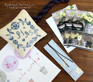 I was thoroughly spoiled by my blogging friends as well... In fact, I feel truly honored to have so many kind and caring friends in the stitching world. You made me feel so special and I thank you all for your friendship as well as all of your generous and thoughtful gifts.