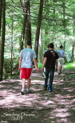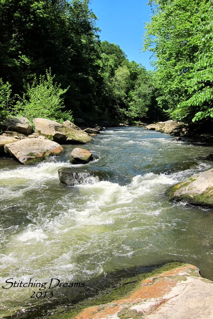 MEMORIAL DAY WEEKEND... Our Memorial Day weekend, although unseasonably cool, was a delight... Can you guess why? Well, we had all three sons home for the first time since Christmas! I love it when the three of them are together--love to hear their laughing and teasing, their inside jokes that go way back to childhood, their interaction as adults versus little boys (although sometimes those little boy roles make an appearance, too!). We took advantage of the sunny, but chilly, weather on Sunday and drove 40 miles north to a beautiful state park called McConnells Mill. The last time I had been there was 36 years ago as a newly engaged-to-be-married college senior. My soon-to-be husband (we were married two months later) and I visited the park with our college friends right before we graduated way back in 1977. It was so nice to visit again after all these years with our three grown sons. We packed a picnic lunch and then hiked along the beautiful Slippery Rock Creek after we ate.