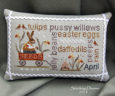 I've only managed a bit of new stitching lately because my husband and I spent some time in southern Florida earlier this month (more on that in a bit). But, I was so relieved to get the April Word Play finally finished up. Yes, "relieved" is the correct word...as much as I love the finish and as adorable as this design is, I just didn't enjoy stitching it any more than I enjoyed stitching the January Word Play. I don't know what my problem is because as an avid reader and librarian, I love words. I persevered, however, and ended up with, what I think, is a very cute finish.