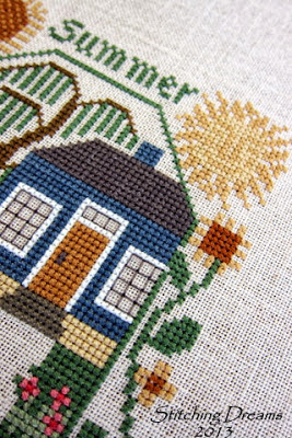 I also began a new piece of what I call "my comfort stitching."  Yes, a new Prairie Schooler design called "Summer" from Book No. 50: Prairie Seasons. I've already stitched Spring and Autumn which you can see here and here. I'd forgotten how "stitch intense" these pieces are! At first glance, it looked like I'd be able to finish this up fairly quickly, but there is so much solid stitching that it will probably take me another two weeks. I find myself completely relaxing with PS designs--there are no surprises; no specialty stitches, no odd colors to deal with, just beautiful designs in pretty hues. What is your "comfort stitching?"