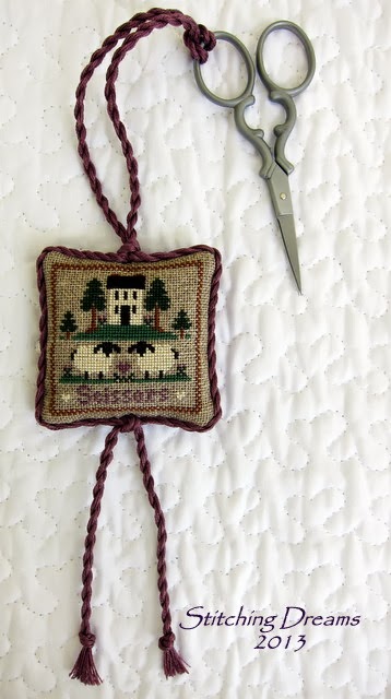 I also finished up the Little House Needleworks scissor fob that I shared with you last month. This one was sent to my friend, Melanie, to thank her for lending me one of her charts. I hope she likes it! This was my very first scissor fob and I'm very happy with how it turned out...