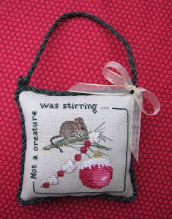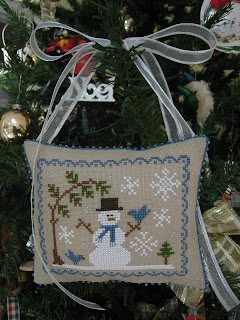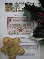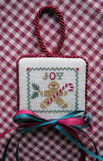 I received a delightful surprise in the mail this past week from Cindy over at Cindy's Stitching. She sent me a lovely stitched Christmas card and the sweetest little Mill Hill bead kit called "Snow Sled." Cindy has been such a loyal supporter of my blog this year and she knew how much I loved to create ornaments so I know she chose this gift especially with me in mind. Thank you so much, Cindy; I love it and can't wait to stitch it and see it hanging on my tree next Christmas! I made her a larger version of my miniature gingerbread boy ornament from last week which you can see pictured on her blog--so glad she likes it!